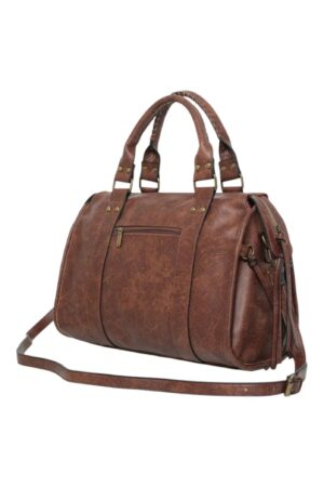 Ανακαλύψτε την ιδανική τσάντα για κάθε σας εμφάνιση! Αυτή η τσάντα ώμου σε εντυπωσιακό καφέ χρώμα συνδυάζει πρακτικότητα και μοντέρνο στυλ. Κατασκευασμένη από υψηλής ποιότητας συνθετικό δέρμα με λεπτομέρειες από τρουκς και μεταλλικά στοιχεία σε μπρονζέ απόχρωση, προσθέτει μια ξεχωριστή, boho-chic πινελιά. Διαθέτει διπλά χερούλια για άνετη μεταφορά στο χέρι, καθώς και αποσπώμενο ρυθμιζόμενο λουράκι για να την κρατάτε στον ώμο ή χιαστί. Η κεντρική θήκη κλείνει με φερμουάρ, εξασφαλίζοντας την ασφάλεια των προσωπικών σας αντικειμένων, ενώ η εξωτερική τσέπη με φερμουάρ είναι ιδανική για εύκολη πρόσβαση σε μικροαντικείμενα. Ιδανική για την καθημερινότητά σας, είτε πρόκειται για το γραφείο, είτε για μια βόλτα στην πόλη.