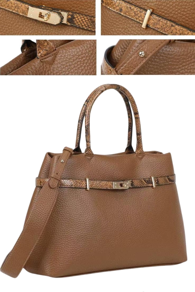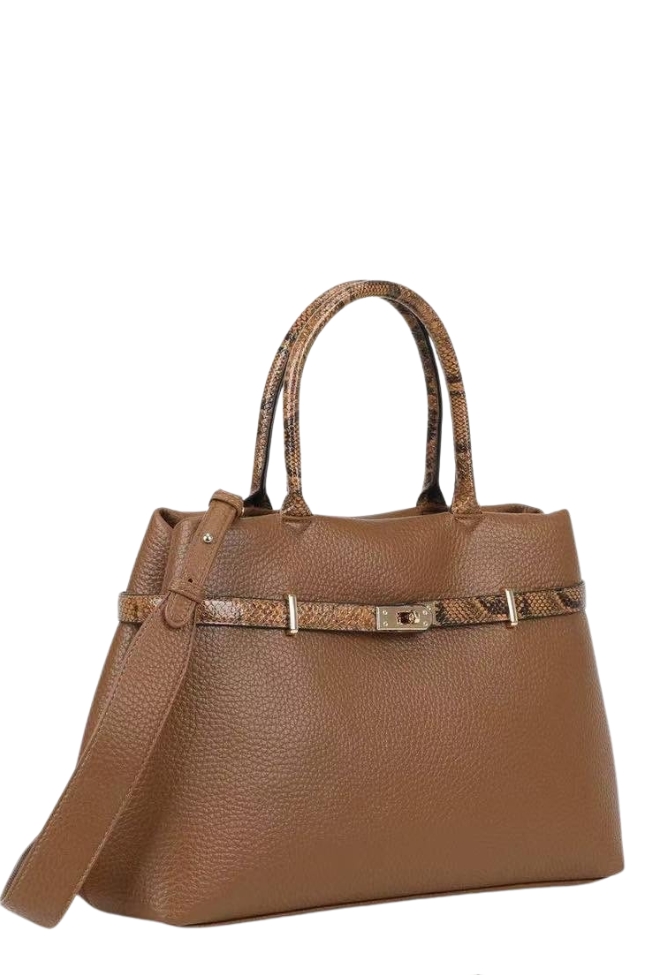 Κάμελ τσάντα για σούπερ στυλάτες εμφανίσεις! Διαθέτει χρυσές λεπτομέρειες, σταθερά λουράκια για να κρατηθεί ως χειρός και ένα ρυθμιζόμενο αποσπώμενο ματ λουράκι για να φορεθεί στον ώμο ή χιαστί.