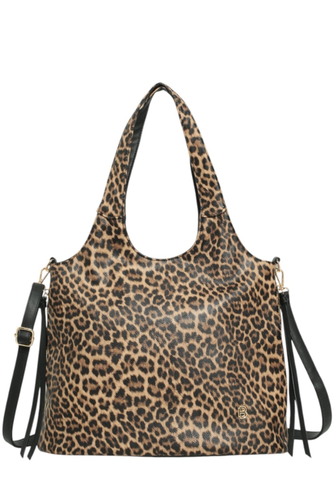 Τσάντα ώμου με Animal Print με διακοσμικά λουράκια – Καφέ