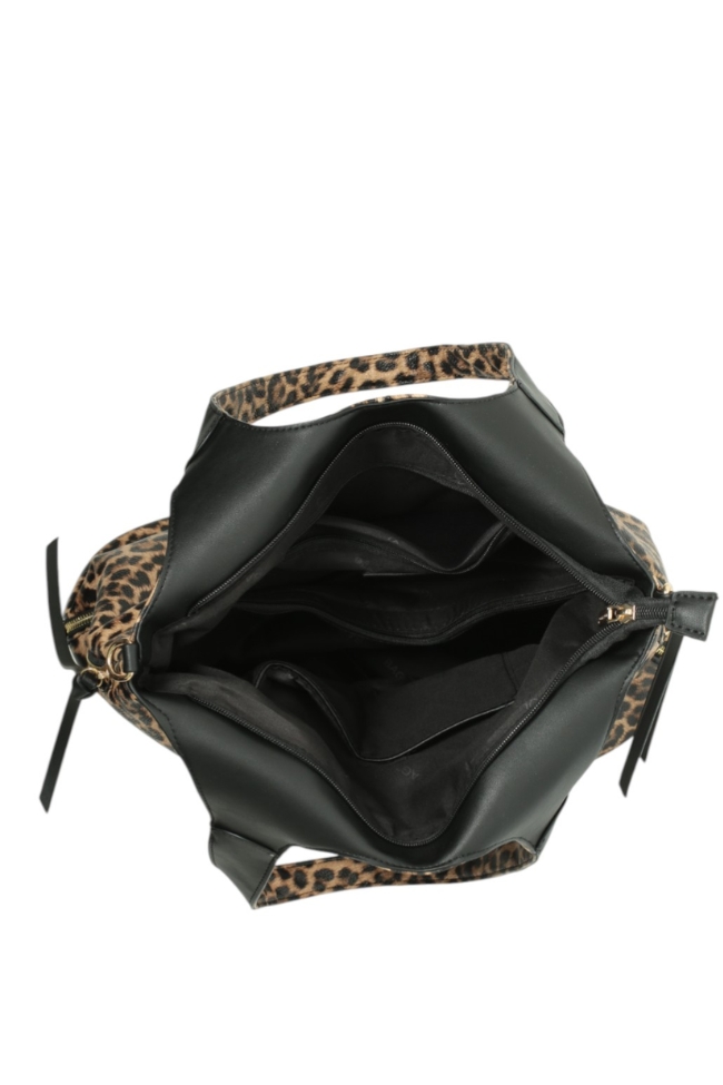 Τσάντα ώμου με Animal Print με διακοσμικά λουράκια – Μαύρο/Καφέ
