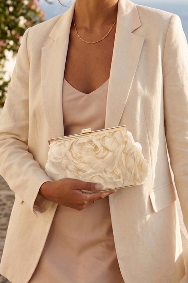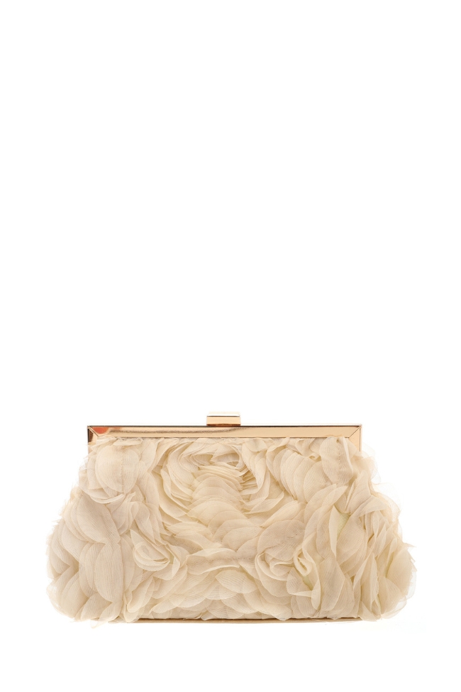 Τσάντα clutch με ανάγλυφο ύφασμα – Μπεζ