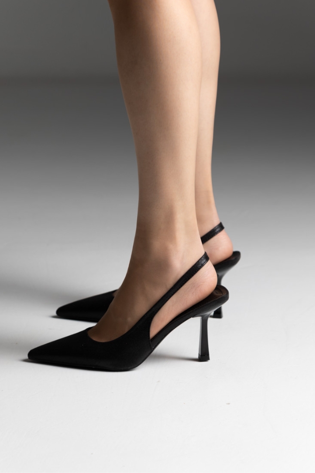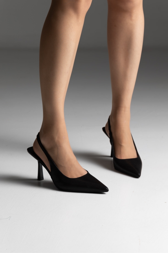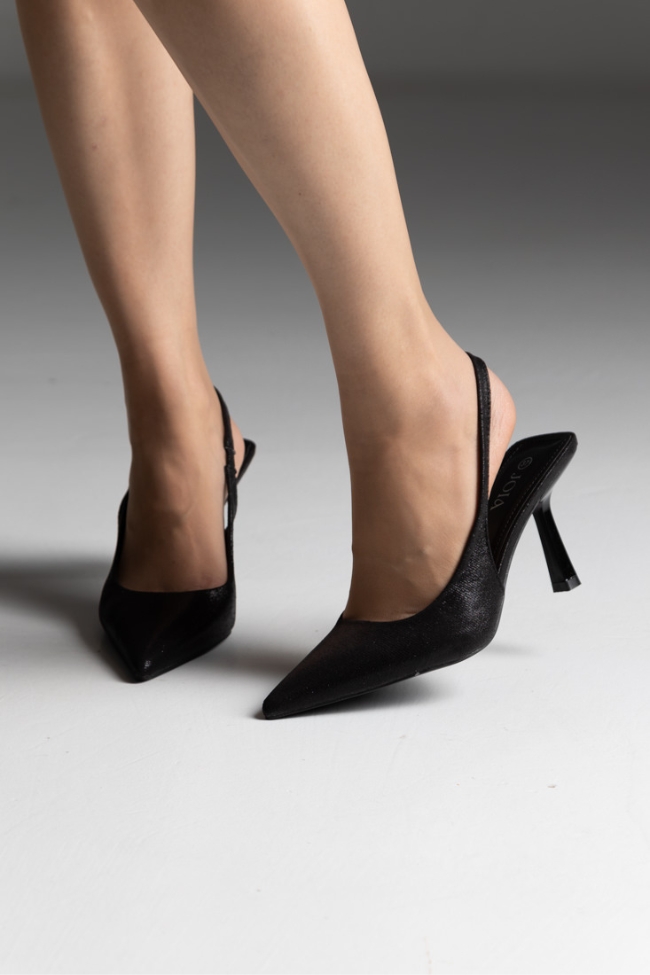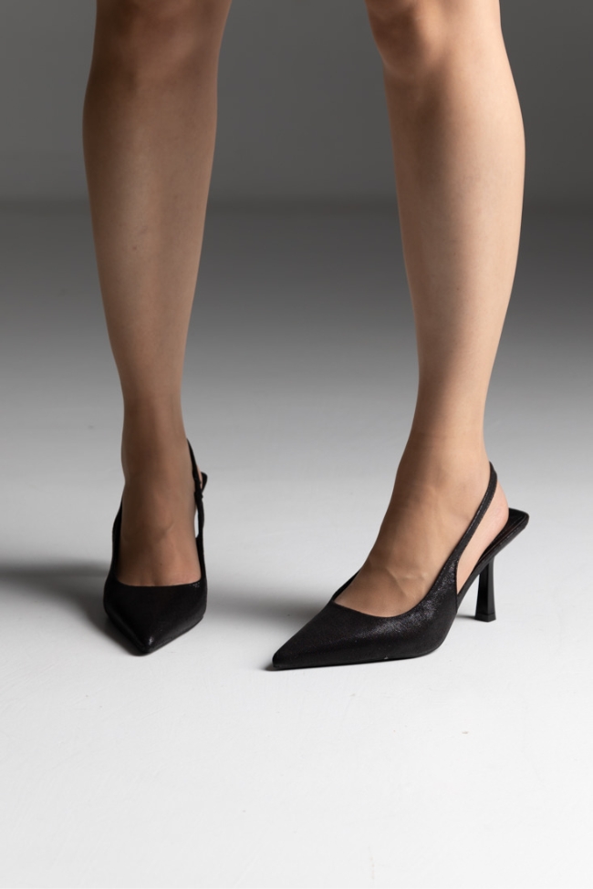 Ψηλές Γόβες Slinback μυτερή δερματίνη με λεπτό τακούνι – Μαύρο
