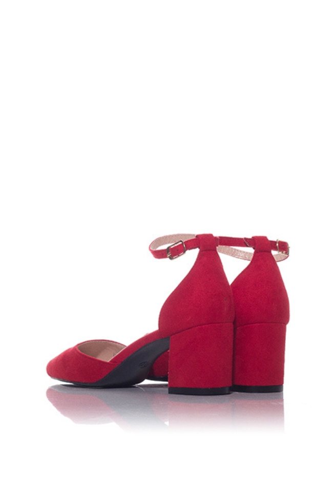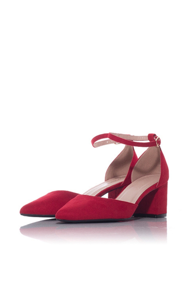 Γόβα suede με χοντρό τετράγωνο τακούνι μυτερή – Κόκκινο