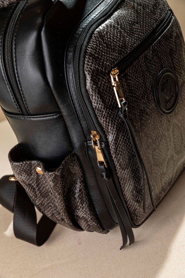 Backpack με πολλές τσέπες – Μαύρο/Snake
