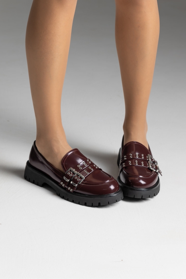 Chunky loafers με διπλό λουράκι με τρουκς στο πάνω μέρος και τρακτερωτό πάτο – Μπορτό