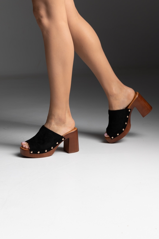 Clogs suede με χοντρό τακούνι – Μαύρο