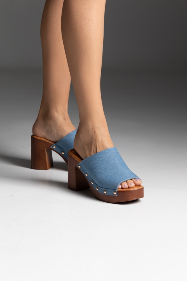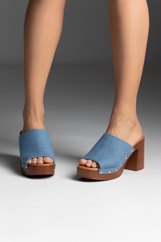 Clogs suede με χοντρό τακούνι – Μπλέ
