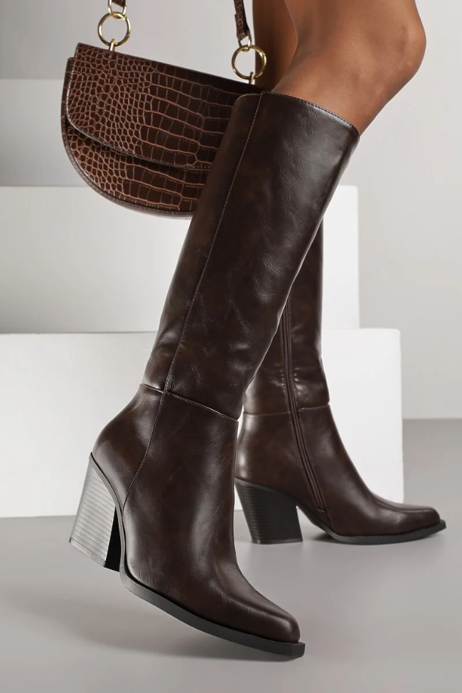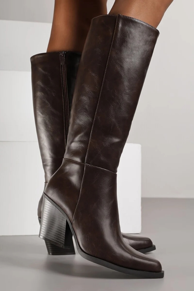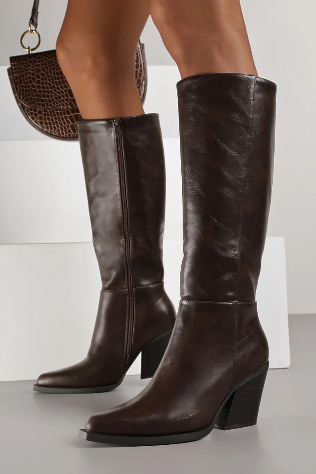 Cowboy Μπότες με τετράγωνο τακούνι – Καφέ