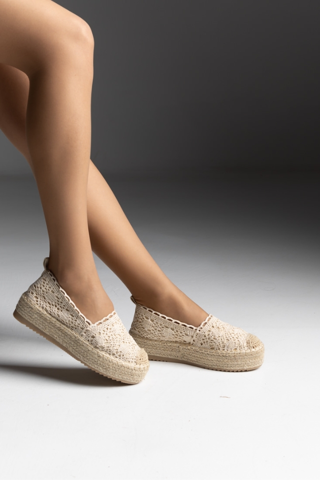 Espadrilles υφασμάτινη δαντέλα – Μπέζ
