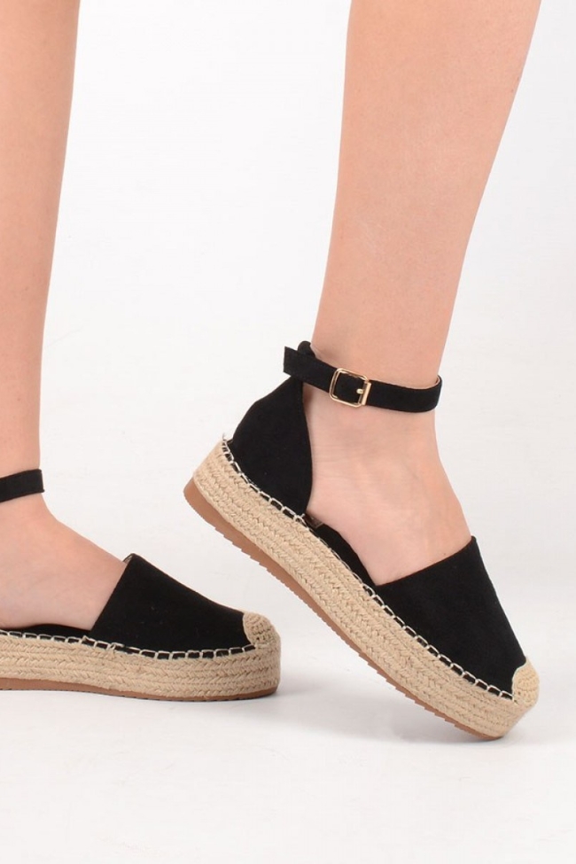 Eσπαντρίγιες Suede δίπατη, διάτρητη που δένει στον αστράγαλο – Μαύρο