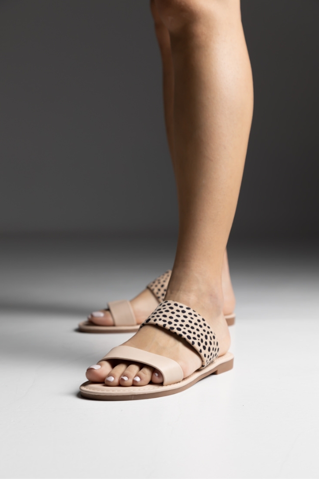 Flat παντόφλες δερματίνη με soft πάτο, με λουράκι δερματίνη και suede – Λεοπάρ