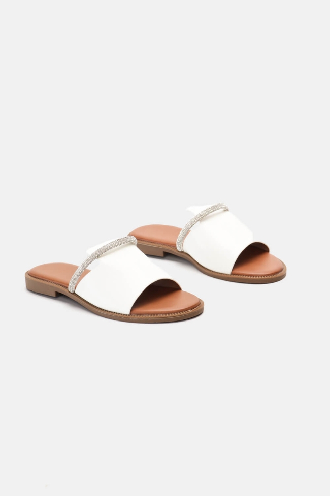 Flat παντόφλες με Strass – Λευκό