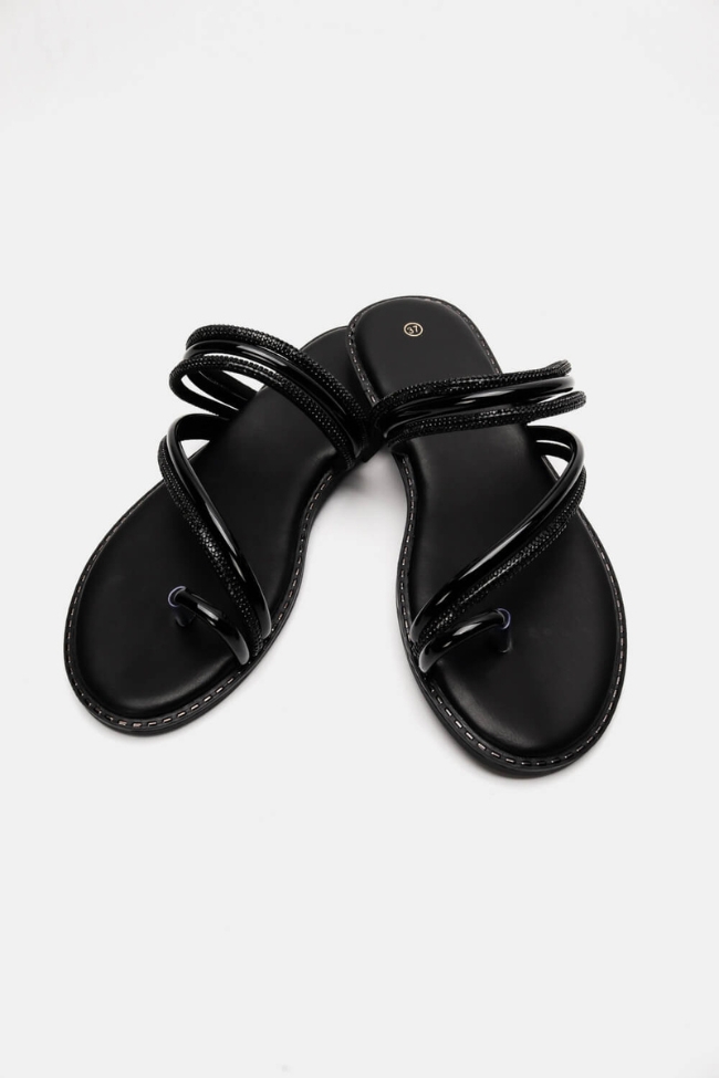 Flat παντόφλες με Strass – Μαύρο