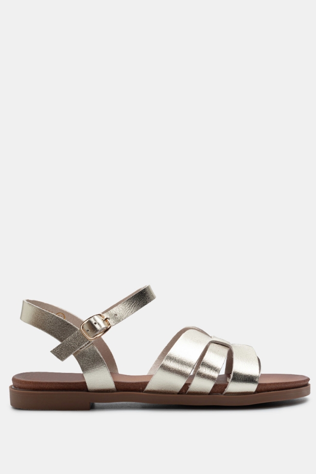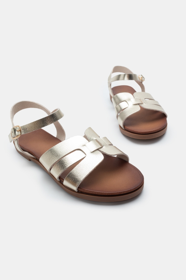 Flat Σανδάλια με Περίτεχνα Λουριά & Μπαρέτα – Χρυσό