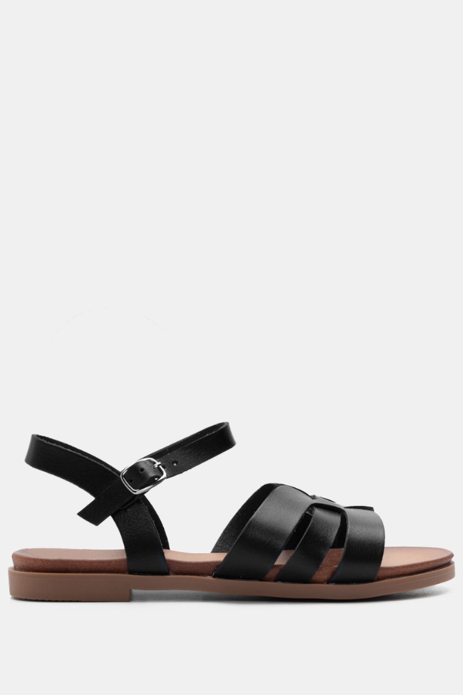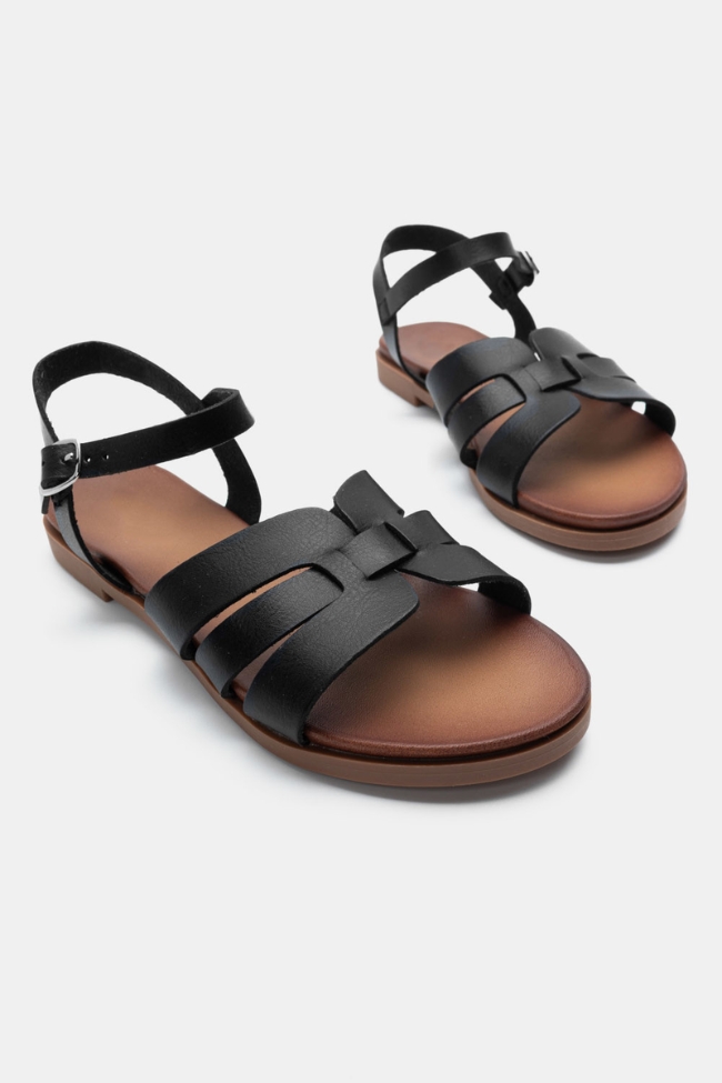 Flat Σανδάλια με Περίτεχνα Λουριά & Μπαρέτα – Μαύρο