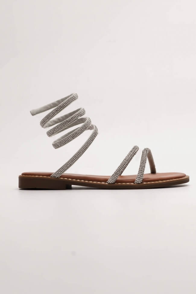 Flat Σανδάλια με Περιστρεφόμενο Λουράκι & Strass – Ασημί