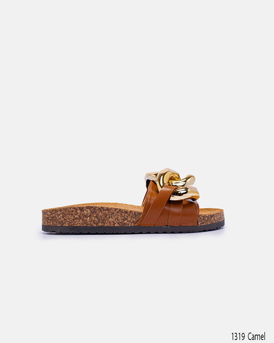 Παντόφλες με Διακοσμητική Αλυσίδα – Κάμελ