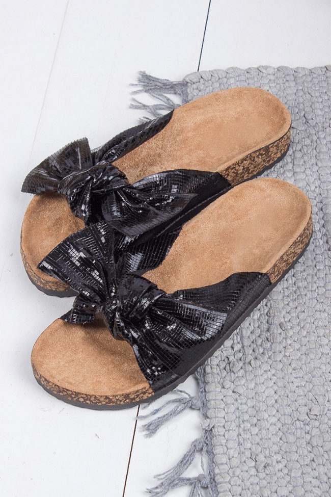 Παντόφλες δερματίνη με διακοσμητικό φιόγκο – Μαύρο