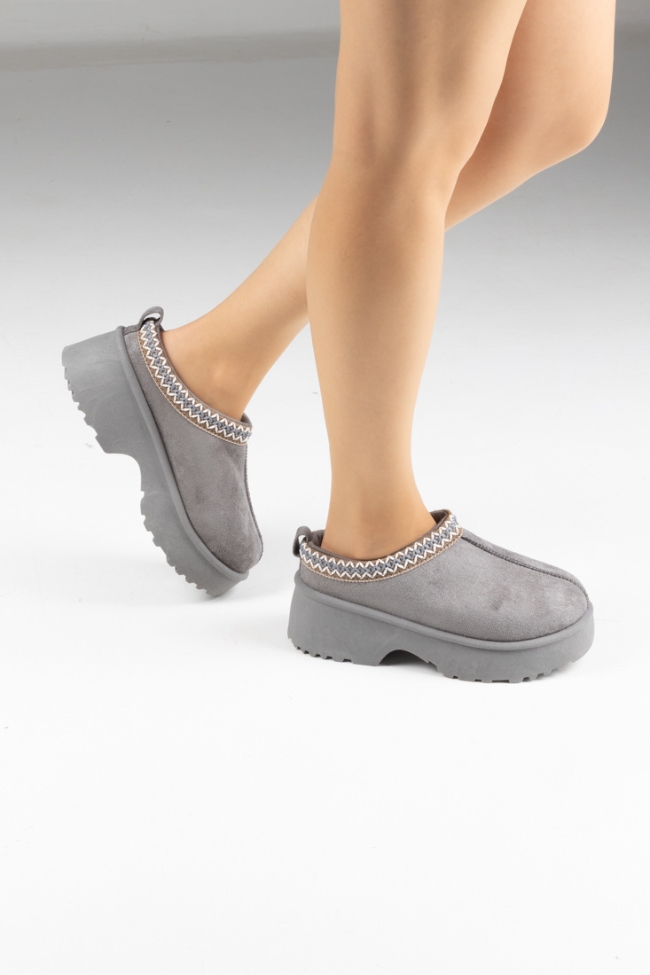 Fluffy slippers suede με εσωτερική επένδυση γούνας, με σόλα πλατφόρμα – Γκρί