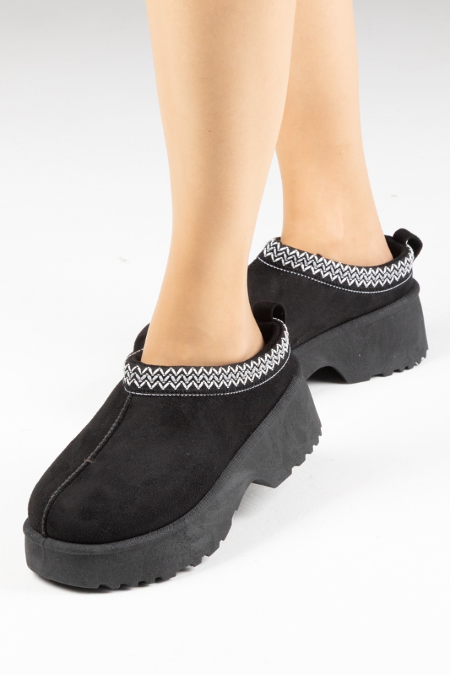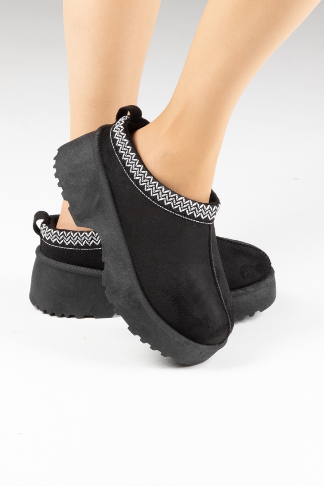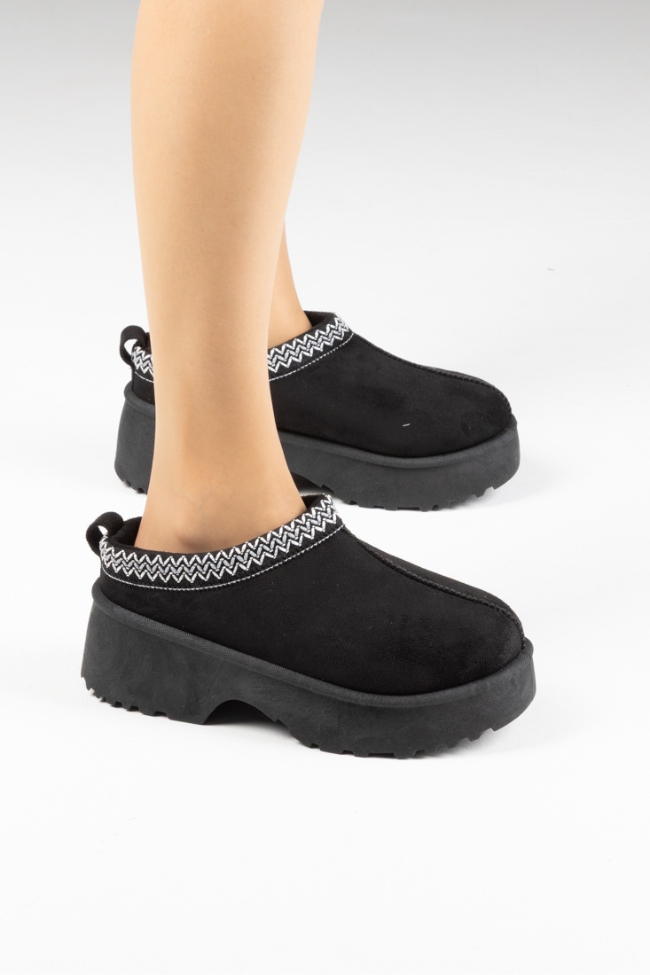 Fluffy slippers suede με εσωτερική επένδυση γούνας, με σόλα πλατφόρμα – Μαύρο