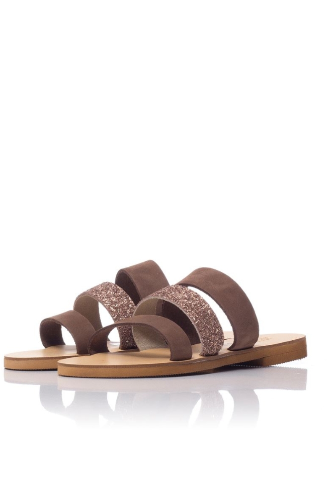Leather sandals flat με τρία πολύχρωμα λουράκια
