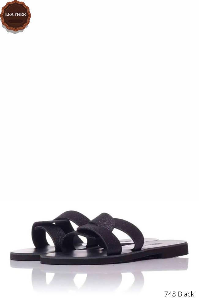 Leather sandals flat με διπλό πλεγμένο φαρδύ λουράκι