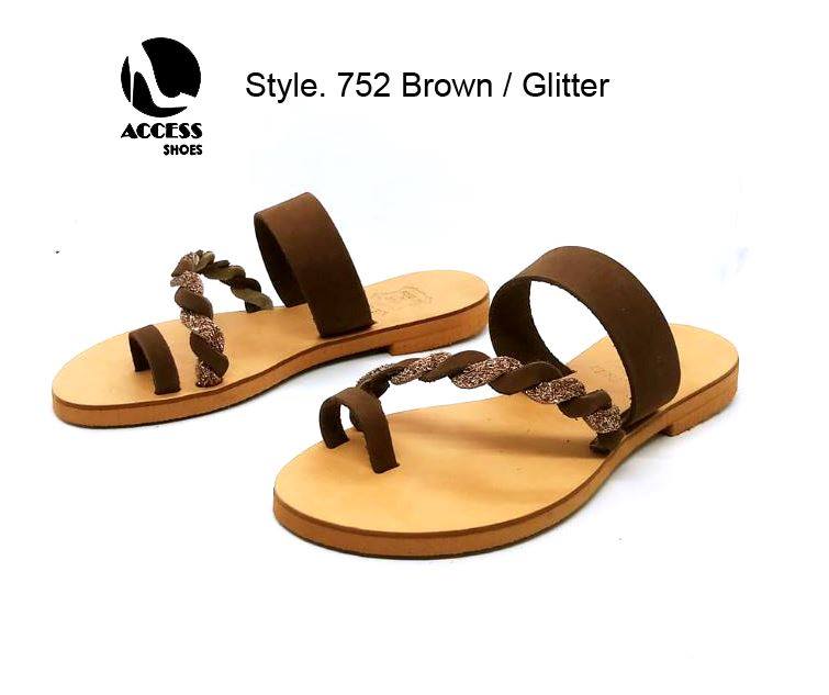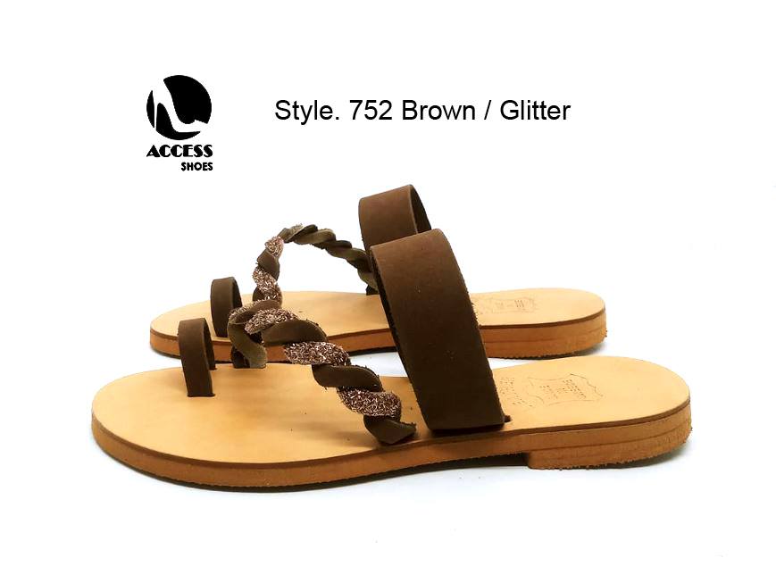 Leather sandals flat με πλεγμένο λοξό λουράκι και φαρδύ λουράκι στο κουτεπιέ