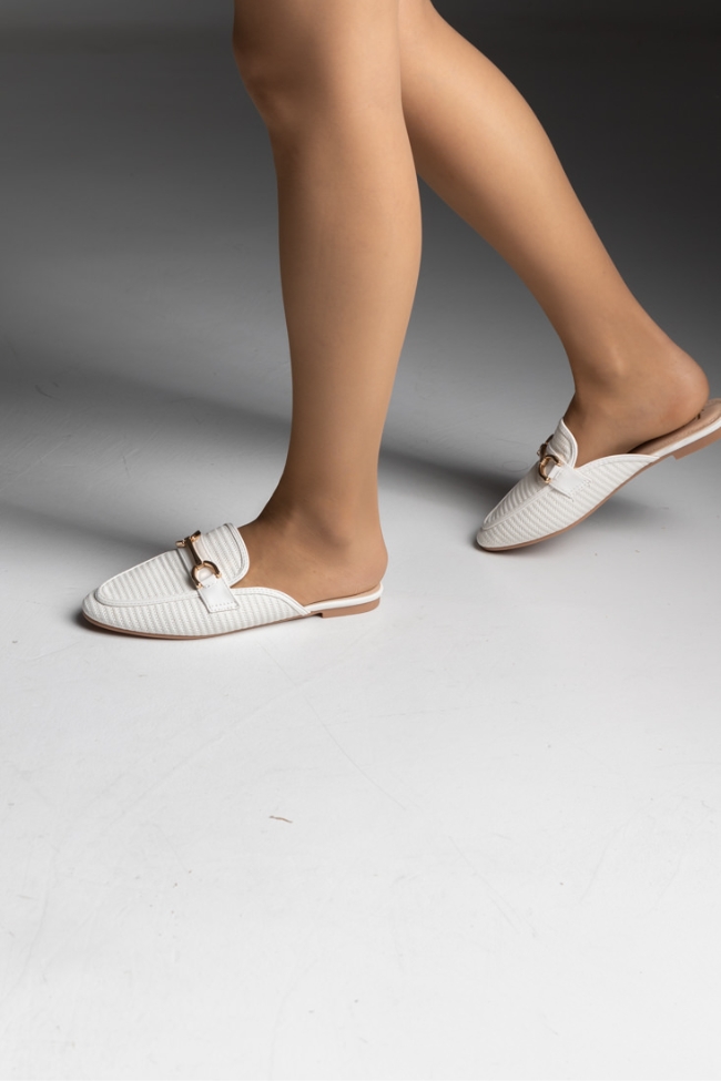 Loafer mule με χρυσό μεταλλικό στοιχείο – Λευκό
