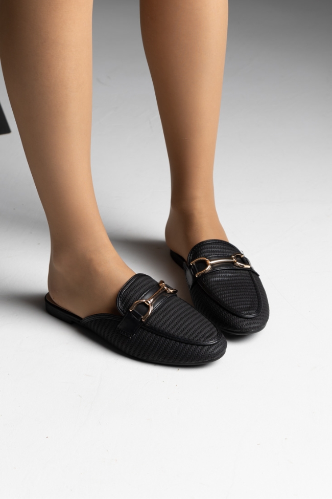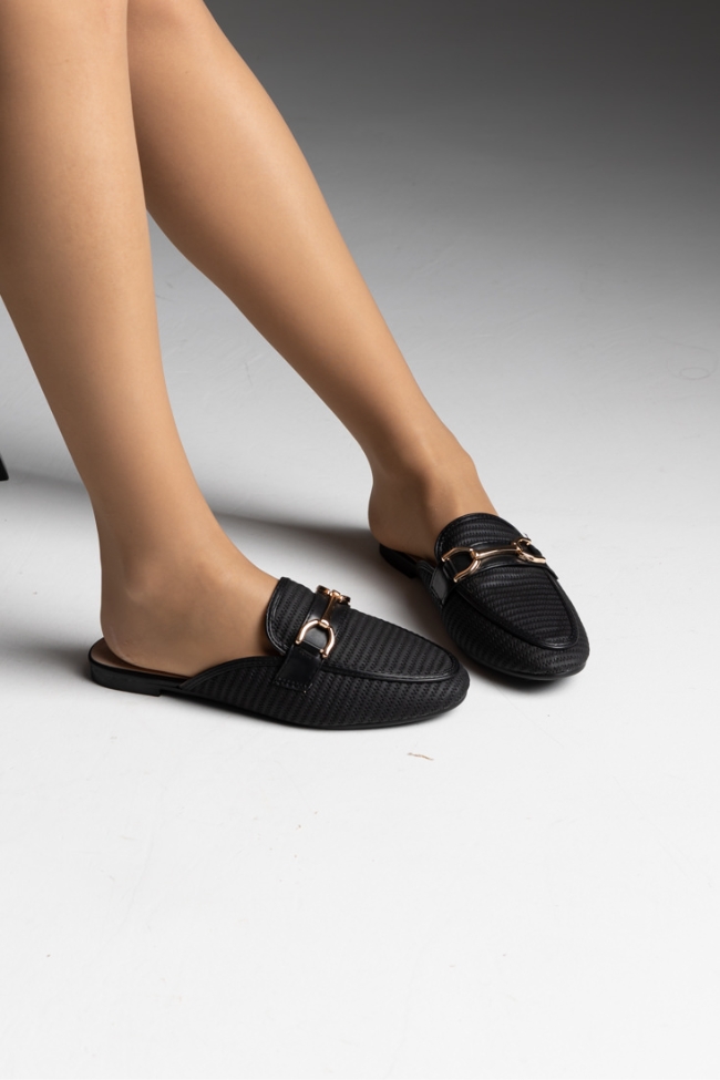 Loafer mule με χρυσό μεταλλικό στοιχείο – Μαύρο