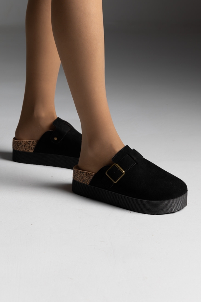 Mules suede με αγκράφα – Μαύρο