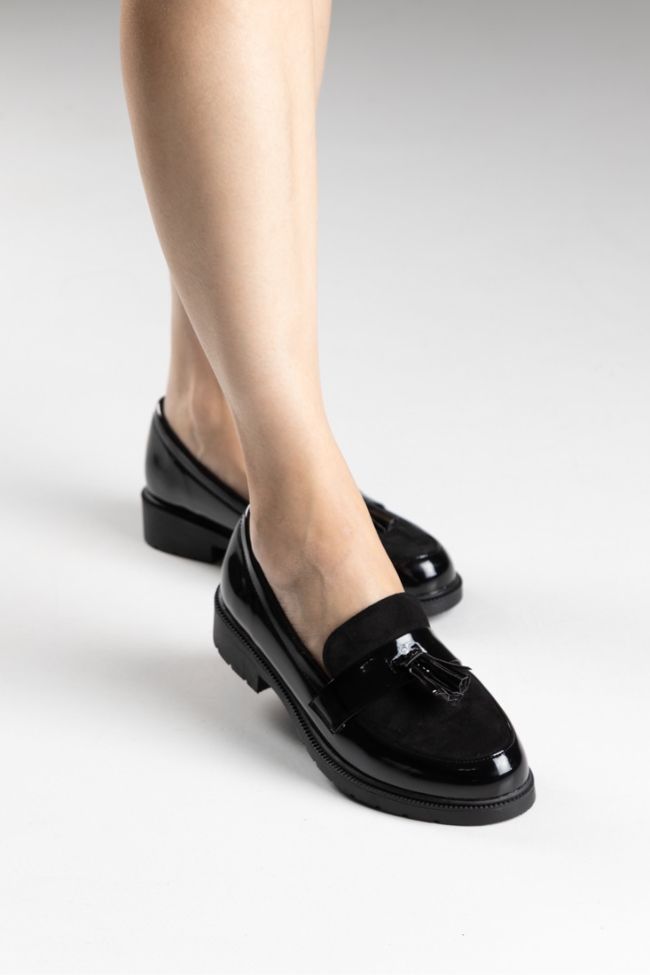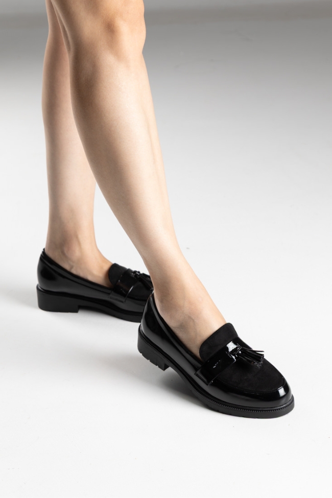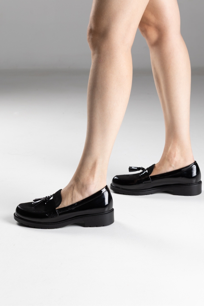 Loafers λουστρίνι και με suede λεπτομέρεια – Μαύρο