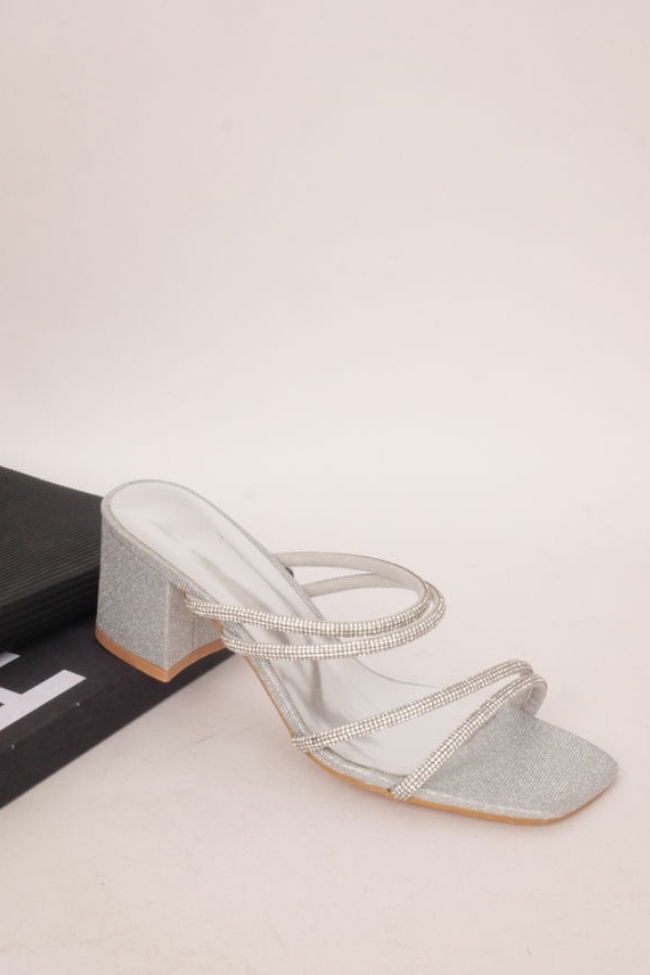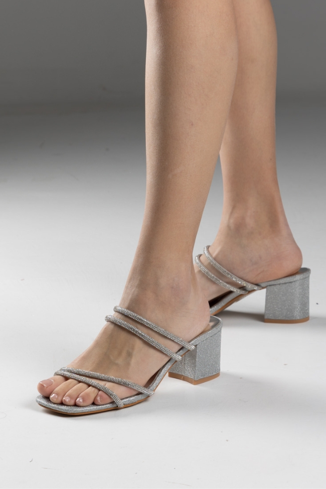 Mules Πέδιλο χαμηλά με strass και glitter – Ασημί