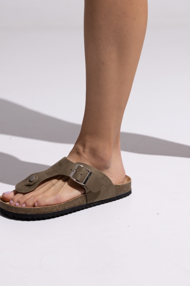 Sandals με αγκράφα τύπου suede – Μπέζ