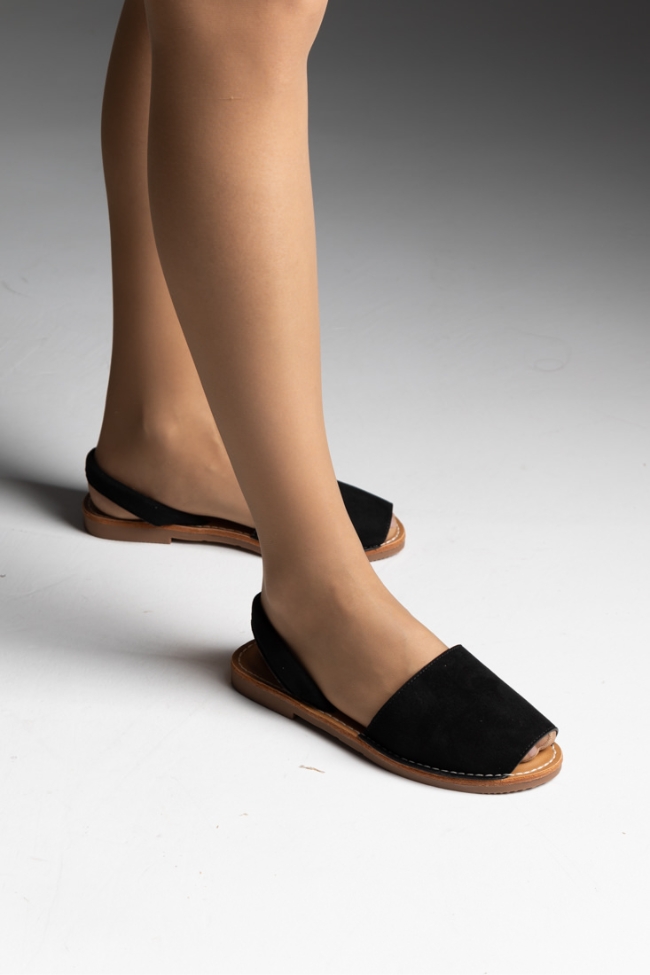 Sandals suede με φαρδύ λουράκι και λουράκι στην φτέρνα .