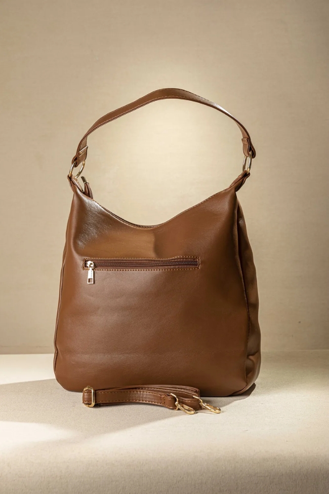 Shopping Bag με εξωτερική θήκη με φερμουάρ- Κάμελ