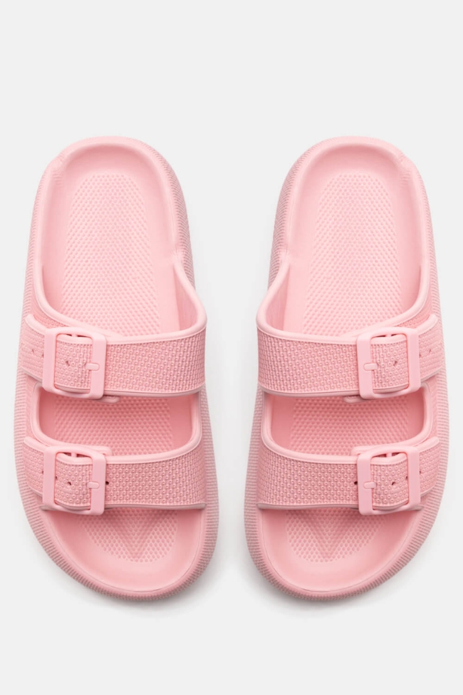 Slides με Διπλό Λουράκι και Ανάγλυφη Υφή – Ροζ