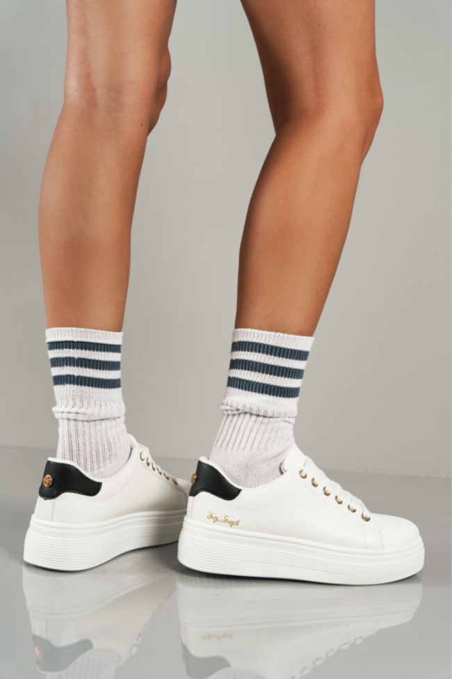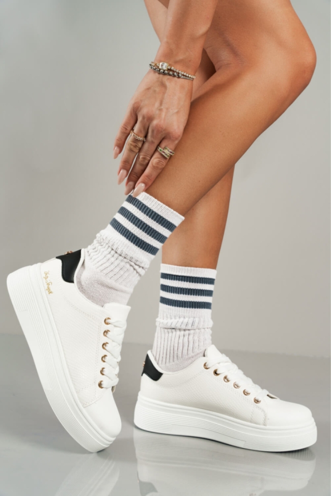 Sneakers Δίσολα Snake Print .Αναδείξτε το στυλ σας με αυτά τα sneakers, κατασκευασμένα από υλικό με υφή δέρματος και διακοσμημένα με διακριτικές χρυσές λεπτομέρειες που προσδίδουν μία αίσθηση πολυτέλειας. Η άνετη σόλα τους και το minimal σχέδιό τους τα καθιστούν ιδανική επιλογή για κάθε μέρα. Συνδυάστε αυτά τα sneakers με ένα cropped τζιν και ένα λευκό πουκάμισο για ένα καθαρό και κομψό look, ή φορέστε τα με ένα αέρινο καλοκαιρινό φόρεμα για μια πιο χαλαρή και θηλυκή εμφάνιση. Ιδανικά για casual εξόδους, καθημερινές δραστηριότητες ή ακόμα και για τη δουλειά, αυτά τα sneakers προσφέρουν στυλ και άνεση χωρίς συμβιβασμούς