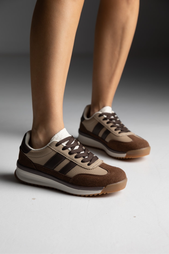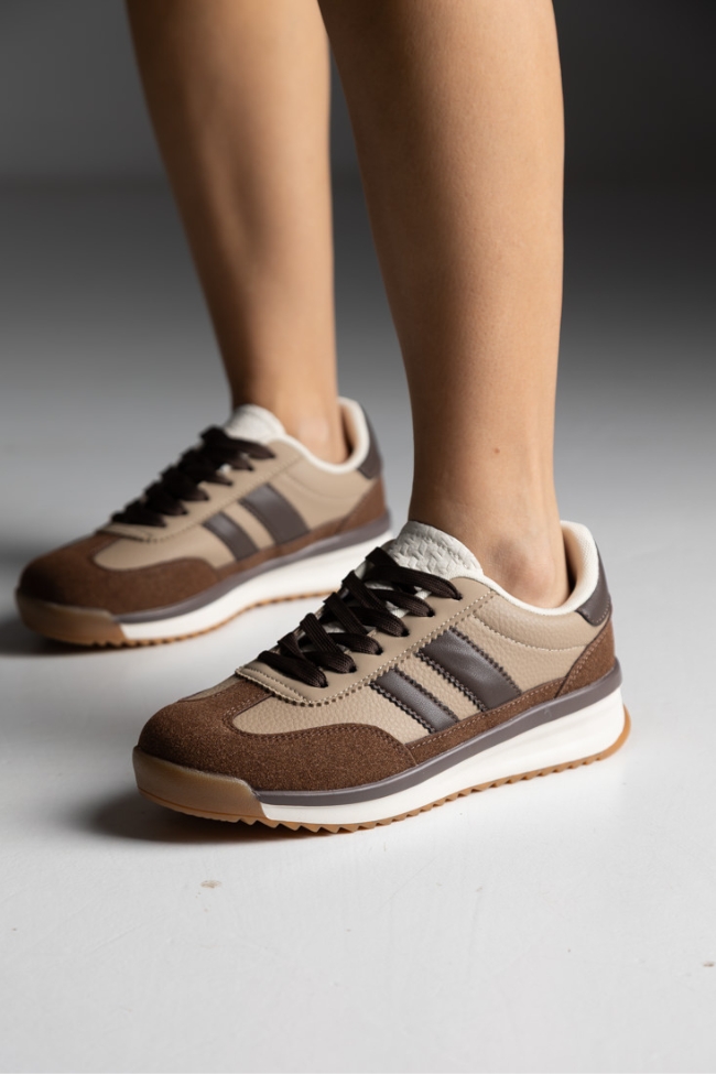Sneakers Δίχρωμα με Ριγέ Σχέδιο – Καφέ