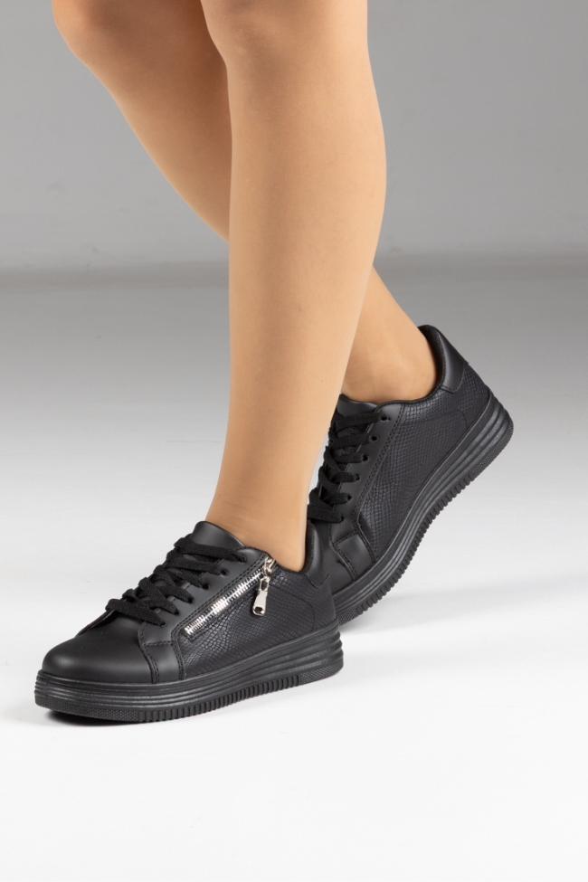Sneakers δερματίνη με κροκό υφή και διακοσμητικό φερμουάρ – Μαύρο