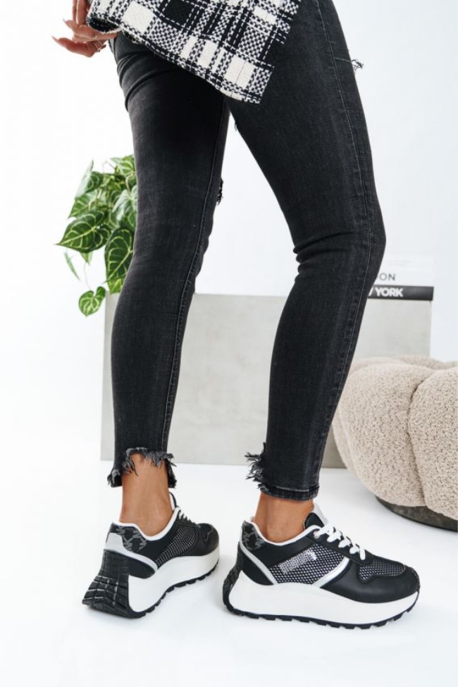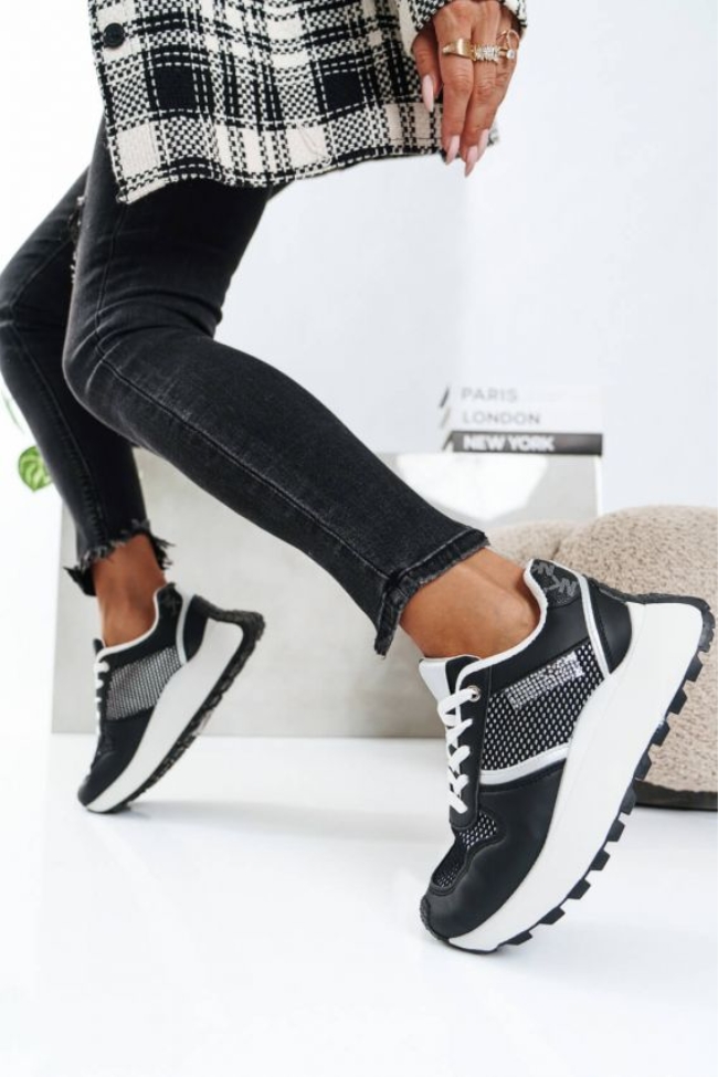 Sneakers με Δίχτυ και Ανάγλυφες Λεπτομέρειες – Μαύρο
