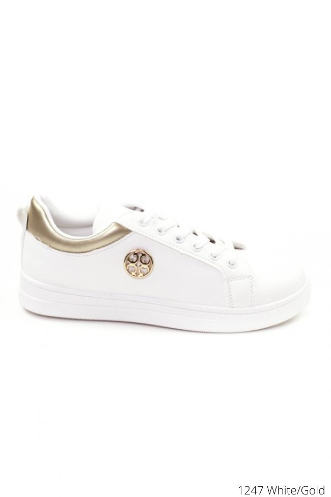 Γυναικεία Sneakers με μεταλλικό διακοσμητικό Λευκό /Χρυσό