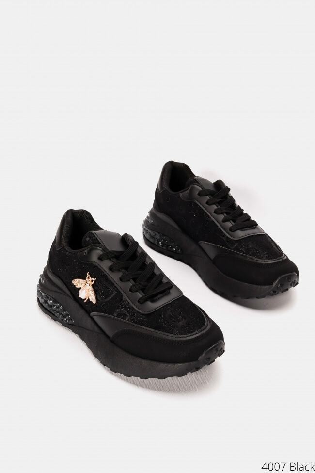 Γυναικεία Sneakers με Χρυσή Διακόσμηση Μαύρο
