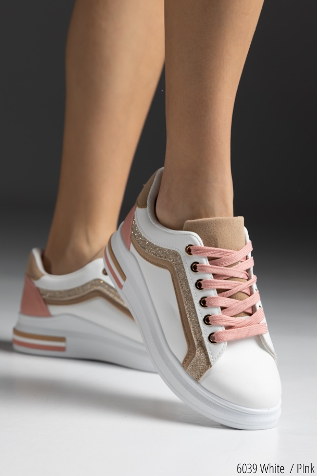 Γυναικεία Sneakers σε Συνδυασμό Χρωμάτων και Ρόζ Κορδόνι