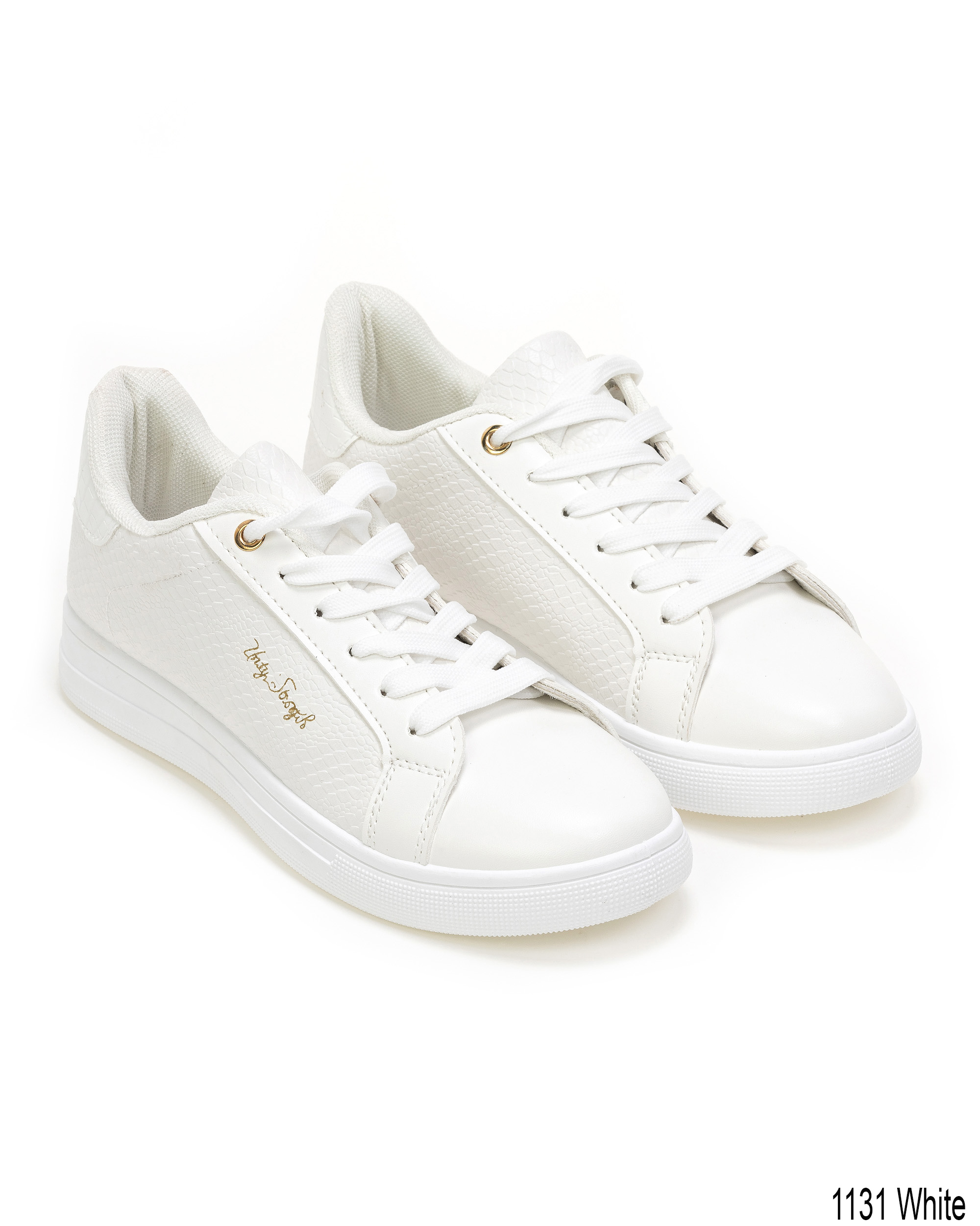 Sneakers δερματίνη matte- croco, με χρυσή γραμματοσειρά στο παλινό εξωτερικό μέρο – Λευκό