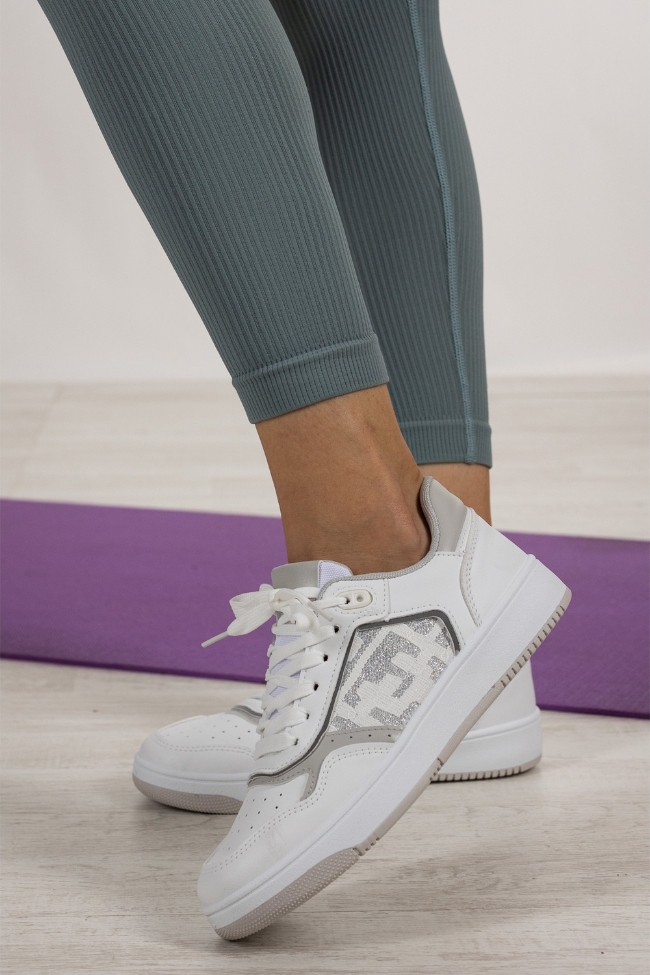 Γυναικεία basic sneakers δετά με glitters – Λευκό