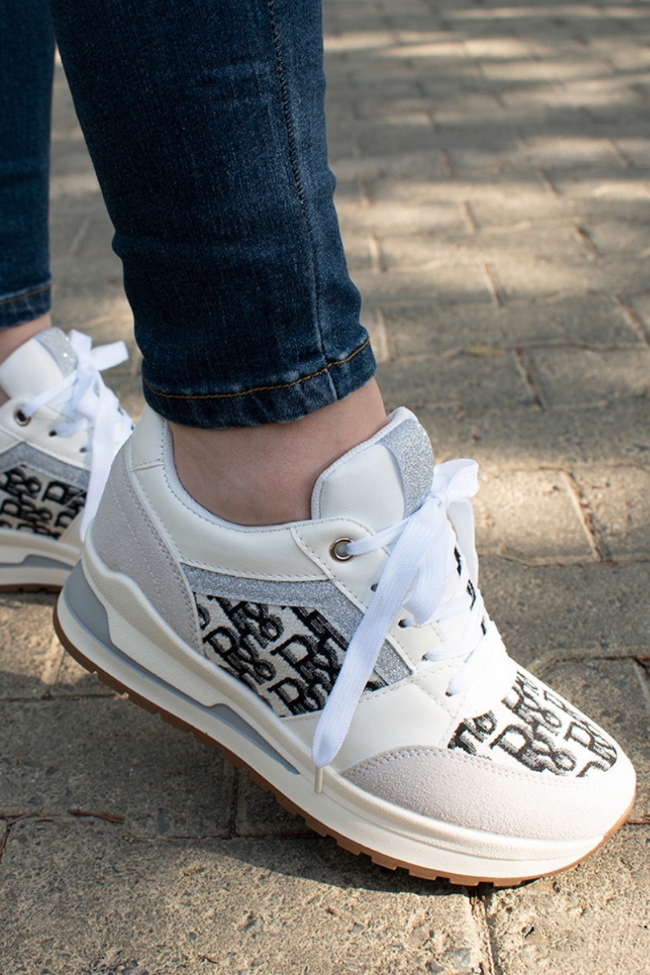 Sneakers με Πλατφόρμα σε Συνδυασμό Υλικών – Λευκό