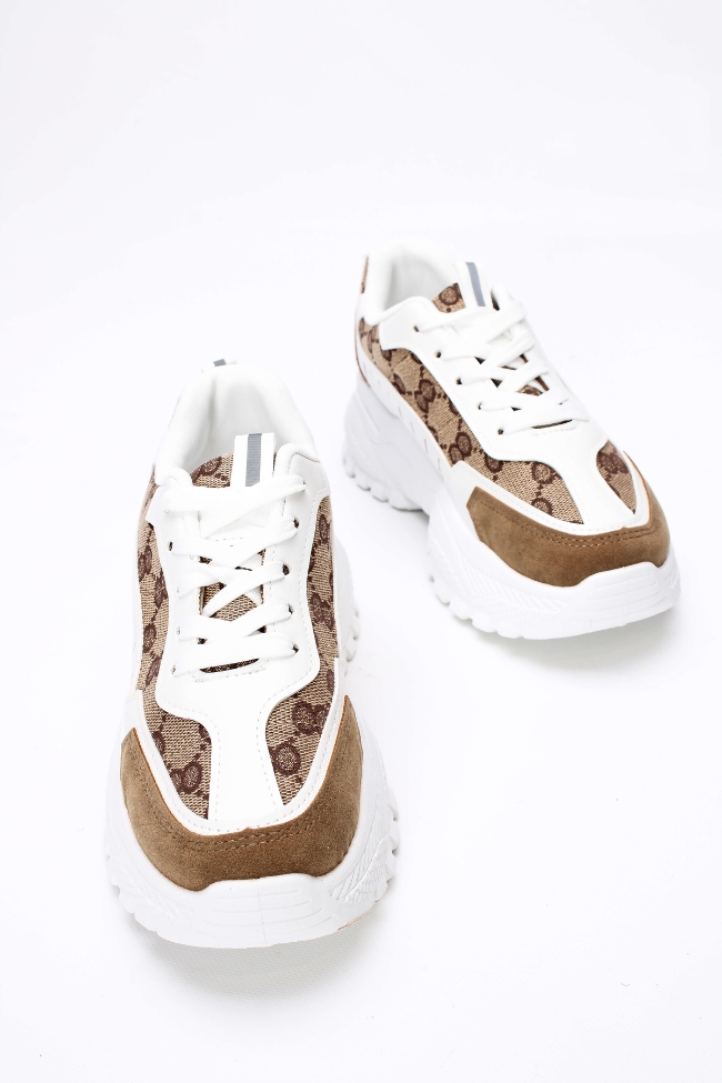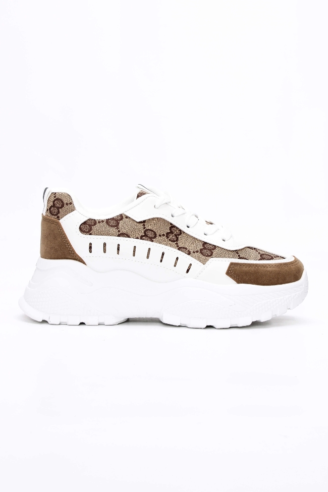 Γυναικεία Sneakers σε Συνδυασμό Υλικών Λευκό
