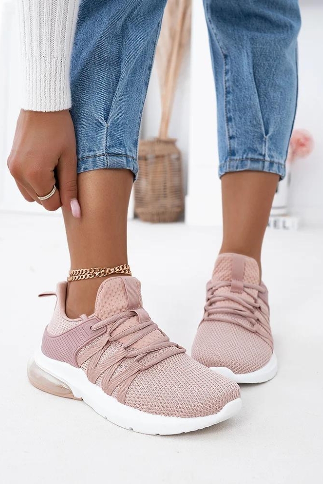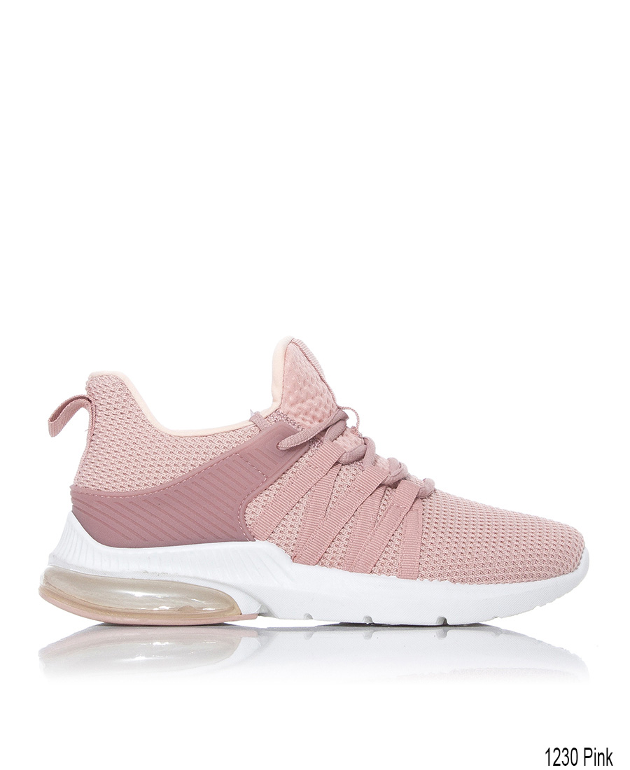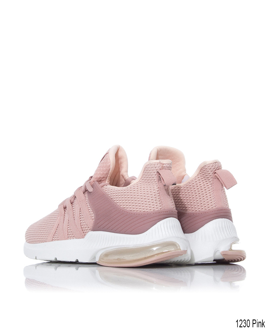 Sneakers υφασμάτινα, με κορδόνια, και δερματίνη λεπτομέρειες – Ρόζ