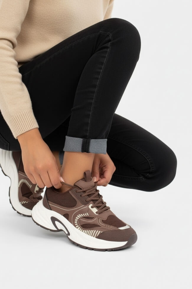 Sneakers Chunky με Συνδυασμό Χρωμάτων – Καφέ