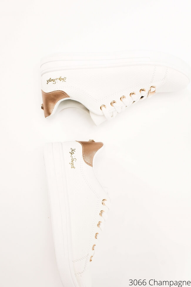 Γυναικεία sneakers με μεταλλικές λεπτομέρειες Λευκό / Σιαμπανί